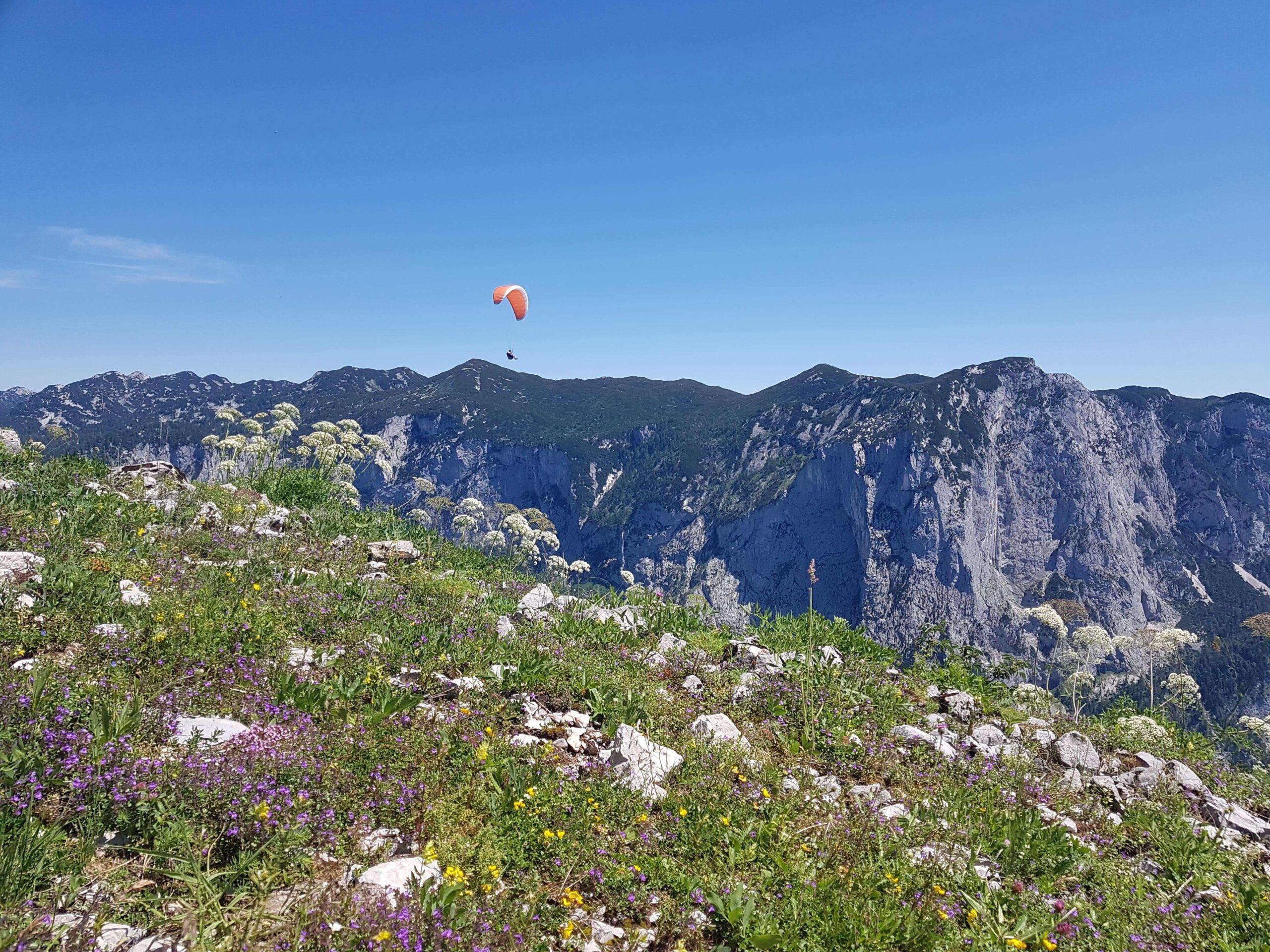 Das Panorama beim Paragliden genießen.